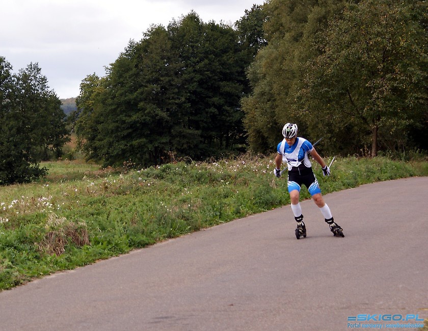 •  Sprzęt: specjalne rolki terenowe na 2 większych niż tradycyjne pompowanych kołach.W zależności od producenta, można jeździć we własnych butach (Skike), lub w bucie zespolonymz szyną (Powerslide). Posiadają one również tzw. hamulec łydkowy, który bardzo skutecznie działa, co przydaje się zwłaszcza w trudniejszym terenie,
